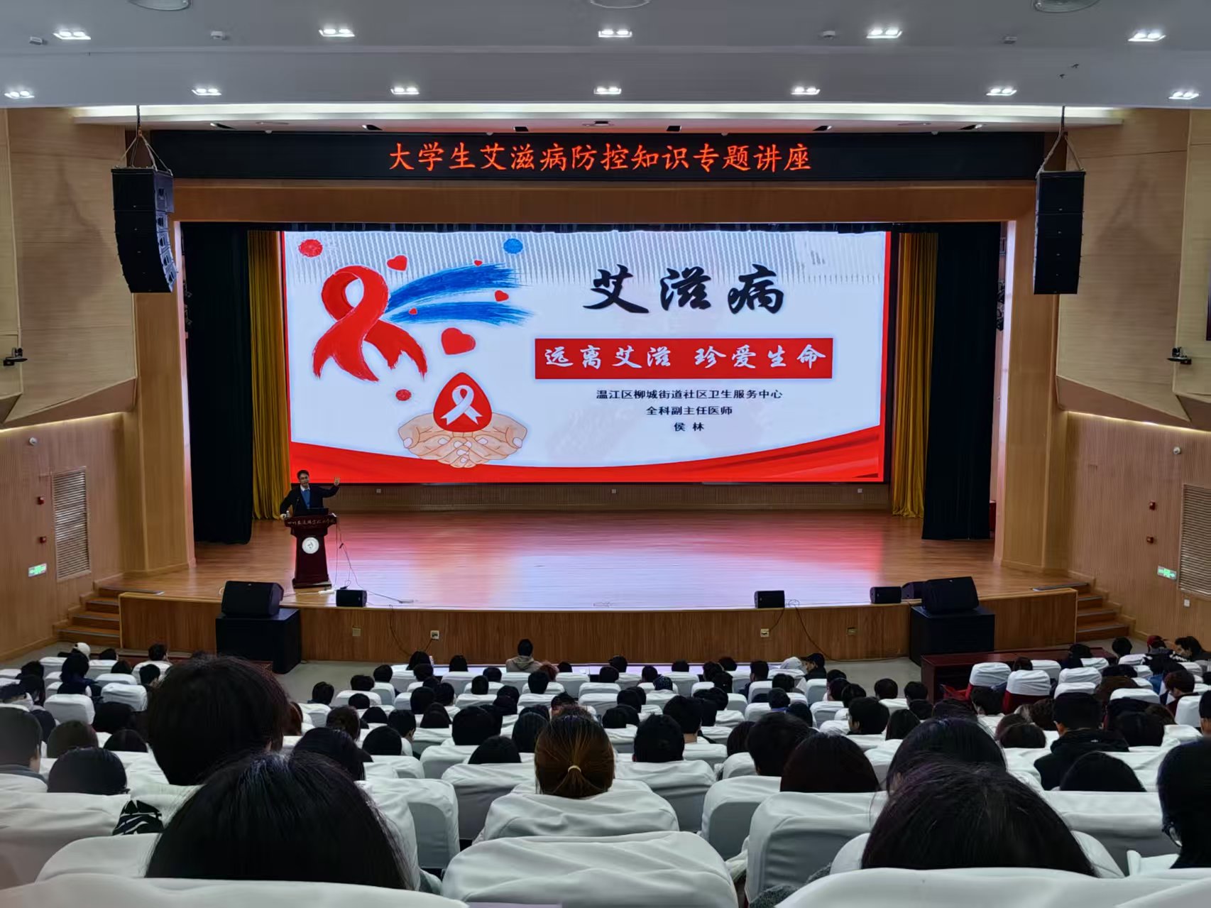11月27日下午,在第38个“世界艾滋病日”到来之际,学院特邀温江区柳城街道社区卫生服务中心副主任医师侯林到校,就艾滋病防控知识开展专题讲座,各系师生代表、卫生所医护人员共计450余人参加。