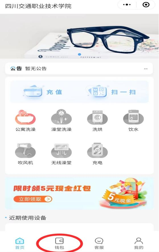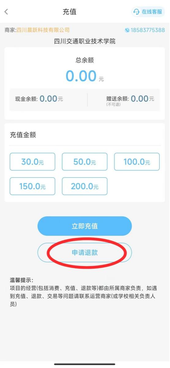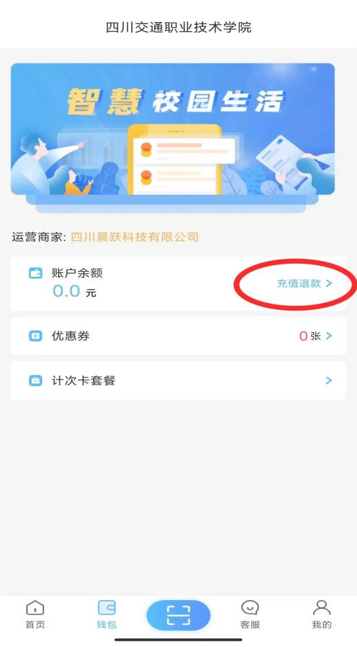 趣智校园APP热水退款:点击左下角“钱包”→“充值退款”→“申请退款”→填写真实姓名、工行卡号等资料→“提交申请”。