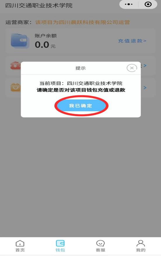 趣智校园小程序热水退款:点击左下角“钱包”→“充值退款”→“我已确定”→填写真实姓名、工行卡号等资料→“提交申请”。